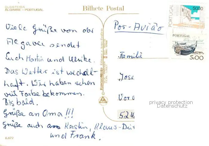 Quarteira_PT Strandpartie postalisch gelaufen nach 1965 Erhaltung siehe scans [WerneD78] WernPID7