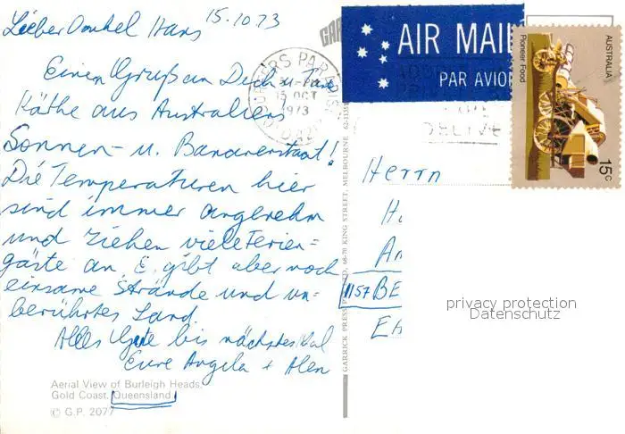 Queensland Aerial View of Burleigh Heads Gold Coast Queensland postalisch gelaufen 1973 Erhaltung siehe scans [WerneD78] WernPID7