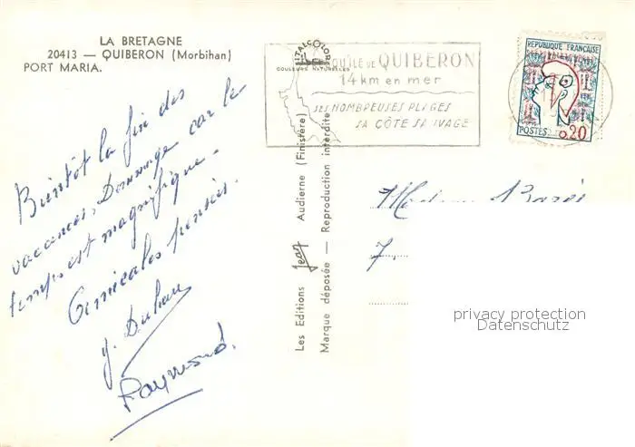 Quiberon_56_Morbihan Port Maria postalisch gelaufen 1965 Erhaltung siehe scans [WerneD78] WernPID7