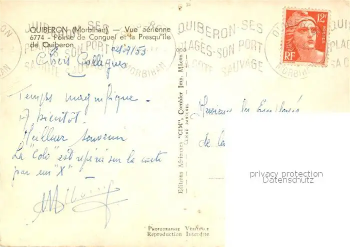 Quiberon_Morbihan Pointe de Conguel et la Presquile de Quiberon Quiberon Morbihan postalisch gelaufen 1953 Erhaltung siehe scans [WerneD78] WernPID7