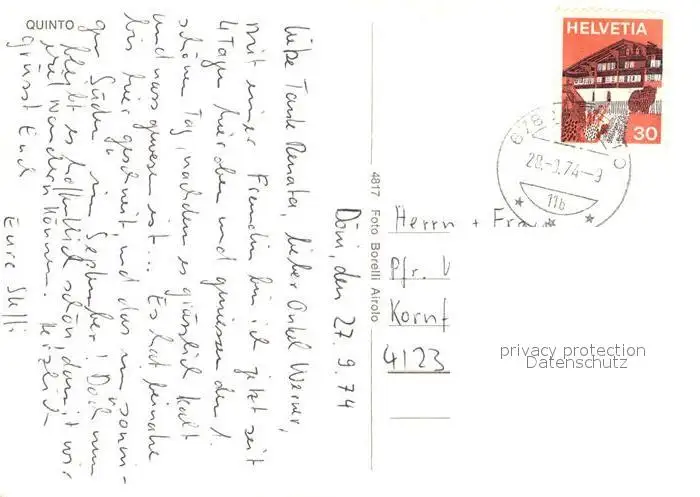 Quinto_Tessin Kirche Quinto Tessin postalisch gelaufen 1974 Erhaltung siehe scans [WerneD78] WernPID7