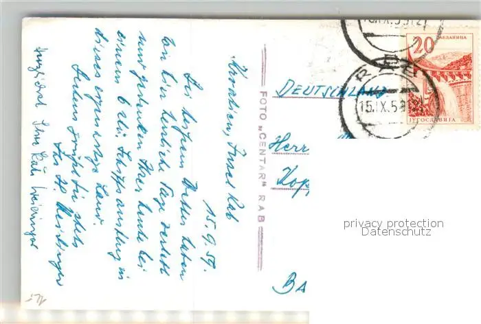 Rab_Croatia Partie am Meer Rab_Croatia postalisch gelaufen 1959 Erhaltung siehe scans [LiesaD40] LiesID40