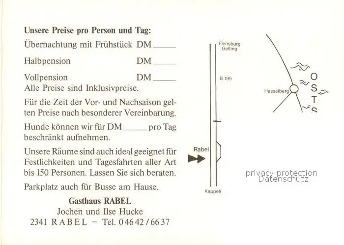 Rabel Gasthaus Rabel Restaurant Festsaal Rabel postalisch nicht gelaufen nach 1965 Werbekarte (keine Postkarte) Erhaltung siehe scans [FriedD77] Werbekarte (keine Postkarte) Frierer