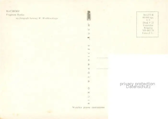 Raciborz Fragment Rynko Raciborz postalisch nicht gelaufen nach 1965 Erhaltung siehe scans [KathaD81] Kathoren