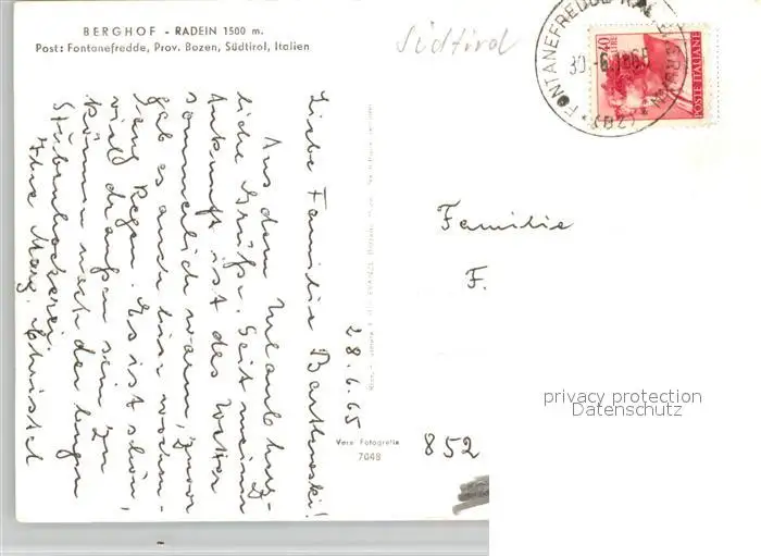 Radein Berghof Radein postalisch gelaufen 1965 Erhaltung siehe scans [KathaD81] Kathoren