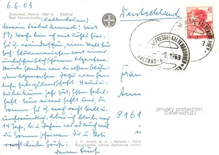 Radein Zirmerhof Radein postalisch gelaufen 1963 Erhaltung siehe scans [FriedD77] Frierer