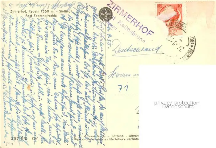 Radein Zirmerhof Radein postalisch gelaufen 1955 Erhaltung siehe scans [WerneD78] WernPID7