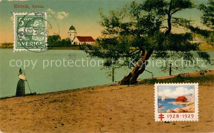 Raettvik Kyrkan Raettvik postalisch gelaufen 1927 Erhaltung siehe scans [KathaD81] Kathoren