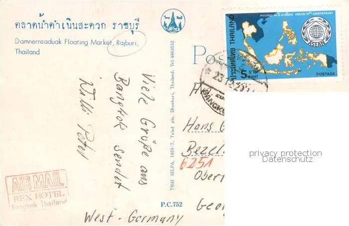 Rajburi_Thailand Damnernsaduak Floating Market postalisch gelaufen nach 1965 Erhaltung siehe scans [LiesaD40] LiesID40