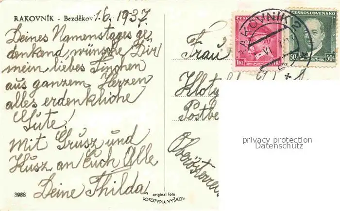 14066269 Rakovnik Rakovnick Rakonitz CZ Bezdekov postalisch gelaufen Erhaltung siehe scans [FriedD77] old postcard Frie Katcode 11520