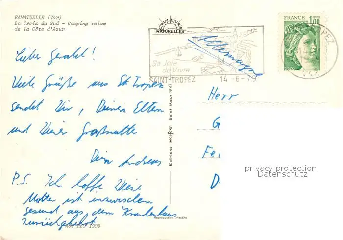 Ramatuelle Camping Relax Ramatuelle postalisch gelaufen 1979 Erhaltung siehe scans [LiesaD40] LiesID40