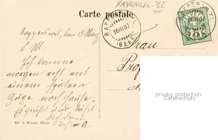 Rapperswil_BE Ortsmotiv mit Kirche Rapperswil BE postalisch gelaufen 1907 Erhaltung siehe scans [FriedD77] Frierer