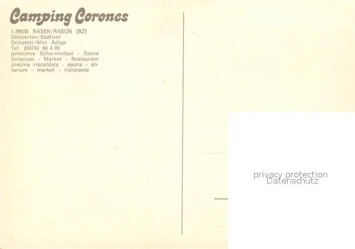 Rasen_Rasun Camping Corones Pool Rasen Rasun postalisch nicht gelaufen nach 1965 Erhaltung siehe scans [LiesaD40] LiesID40