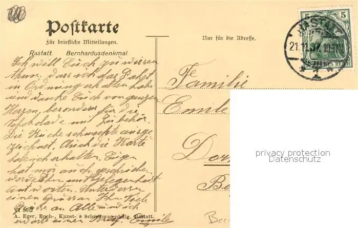 Rastatt Bernhardus Denkmal Rastatt postalisch gelaufen 1907 Erhaltung siehe scans [KathaD81] Kathoren
