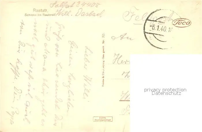 Rastatt Schloss im Rauhreif Rastatt postalisch gelaufen 1940 Feldpost - Stempel Erhaltung siehe scans [LiesaD40] Feldpost - Stempel LiesID40