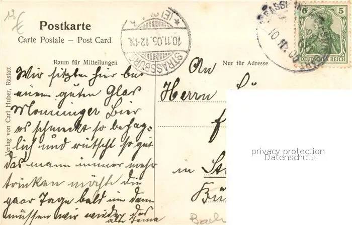Rastatt Stadtkirche Post Rastatt postalisch gelaufen 1905 Erhaltung siehe scans [KathaD81] Kathoren