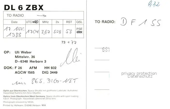 Raumfahrt Space-Shuttle Ladeluke Oberkochen Raumfahrt postalisch nicht gelaufen nach 1965 Erhaltung siehe scans [PaolaD17] PaolPID1