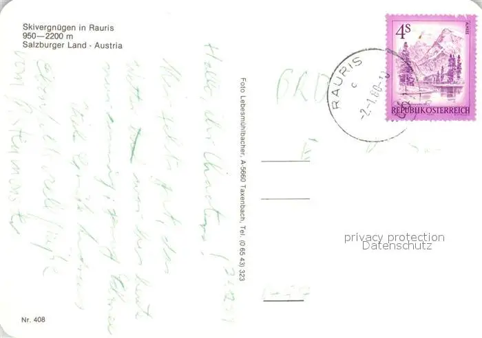 Rauris Skigebiet Rauris postalisch gelaufen 1980 Erhaltung siehe scans [LiesaD40] LiesID40