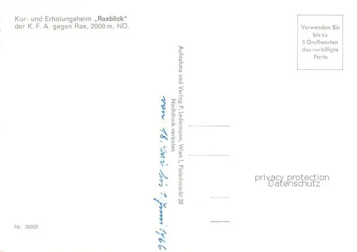 Rax Kur und Erholungsheim Raxblick Rax postalisch nicht gelaufen 1966 Erhaltung siehe scans [WerneD78] WernPID7