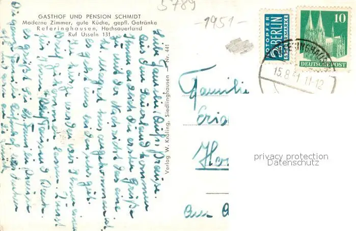 Referinghausen Ortsansicht Gasthof Pension Schmidt Referinghausen postalisch gelaufen 1951 Erhaltung siehe scans [WerneD78] WernPID7