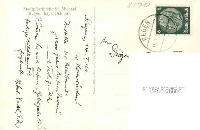 Regen Pfarrkirche St. Michael Regen postalisch gelaufen 1940 Erhaltung siehe scans [LiesaD40] LiesID40