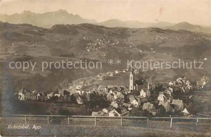 Rehetobel Ortsansicht mit Kirche Alpenpanorama Rehetobel postalisch nicht gelaufen bis 1920 Erhaltung siehe scans [FriedD77] Frierer