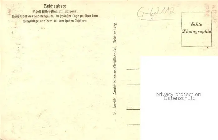 Reichenberg_Liberec A.-H.-Platz Rathaus Reichenberg Liberec postalisch nicht gelaufen 1921-1965 Erhaltung siehe scans [PaolaD17] PaolPID1