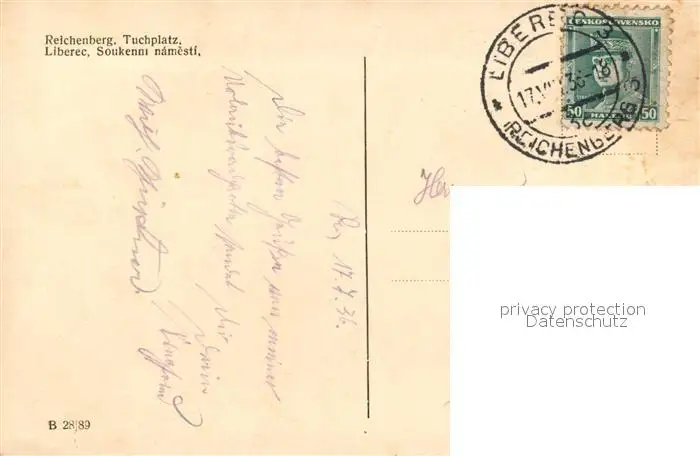 Reichenberg_Liberec Soukenni namesti Tuchplatz Reichenberg Liberec postalisch gelaufen 1936 Erhaltung siehe scans [FriedD77] Frierer