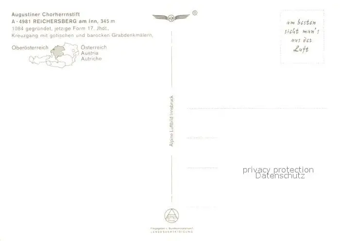 Reichersberg_Inn Augustiner Chorherrenstift Fliegeraufnahme Reichersberg Inn postalisch nicht gelaufen nach 1965 Erhaltung siehe scans [FriedD77] Frierer