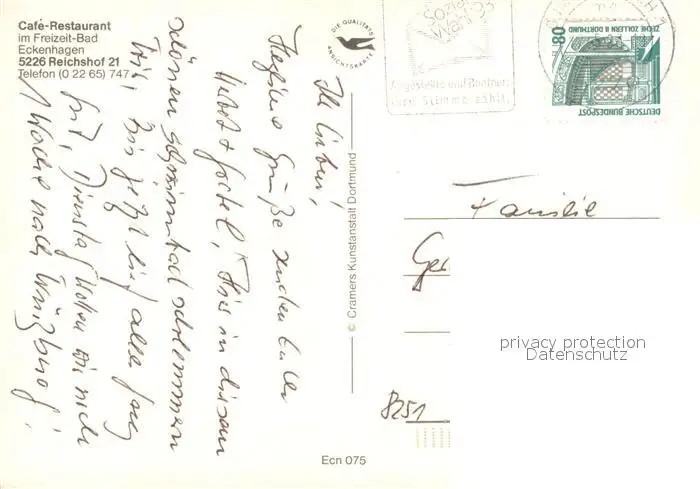 Reichshof Café Restaurant Freizeitbad Eckenhagen Reichshof postalisch gelaufen nach 1965 Erhaltung siehe scans [LiesaD40] LiesID40