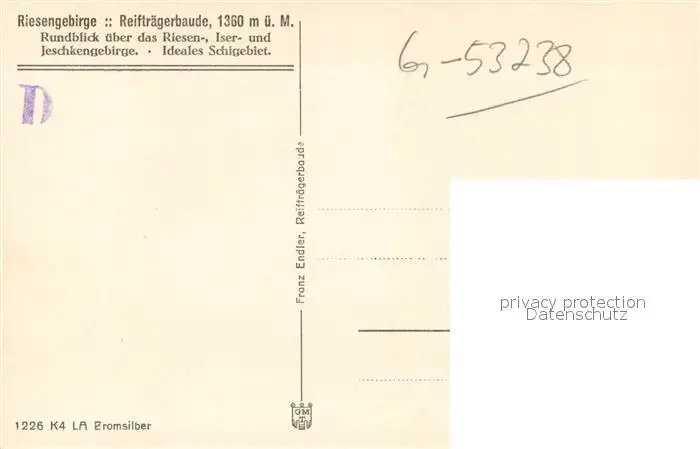 Reiftraegerbaude Reiftraegerbaude postalisch nicht gelaufen 1921-1965 Erhaltung siehe scans [PaolaD17] PaolPID1