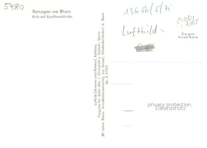 Remagen Apollinariskirche Remagen postalisch nicht gelaufen 1971 Fliegeraufnahme Erhaltung siehe scans [FriedD77] Fliegeraufnahme Frierer