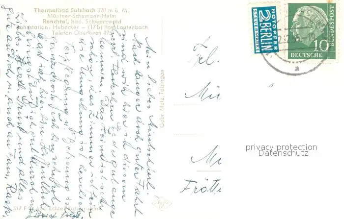 Renchtal Thermalbad Sulzbach Renchtal postalisch gelaufen 1955 Erhaltung siehe scans [WerneD78] WernPID7