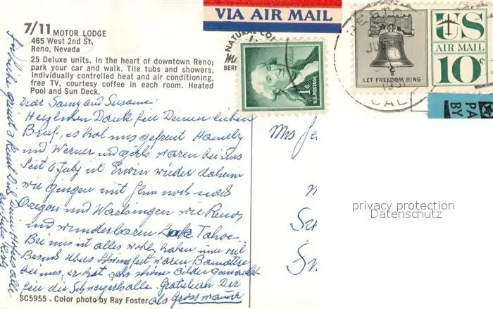 Reno_Nevada 7/11 Motor Lodge Pool postalisch gelaufen nach 1965 Erhaltung siehe scans [WerneD78] WernPID7