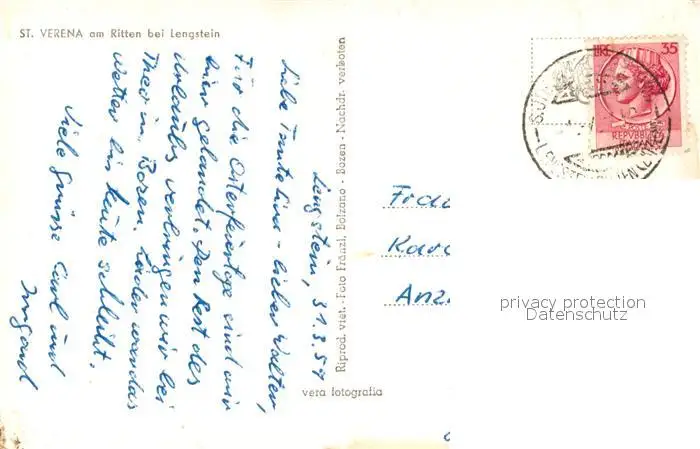 Renon_Ritten San Verena Kirche Renon Ritten postalisch gelaufen 1957 Erhaltung siehe scans [KathaD81] Kathoren