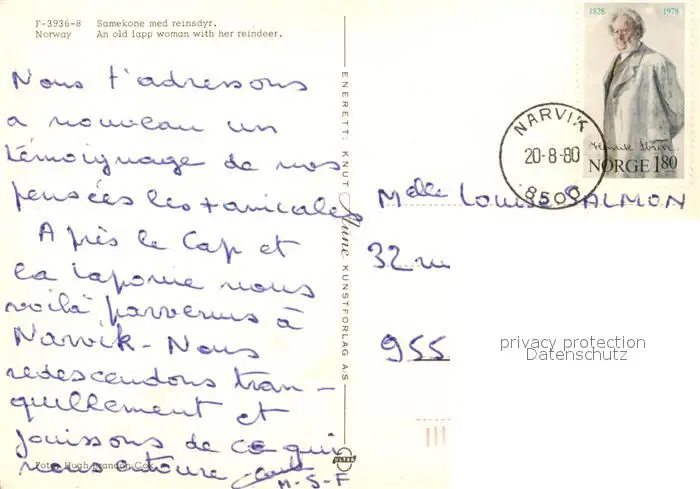 Rentier Lapp Woman Reindeer Norway postalisch gelaufen 1980 Erhaltung siehe scans [PaolaD17] PaolPID1