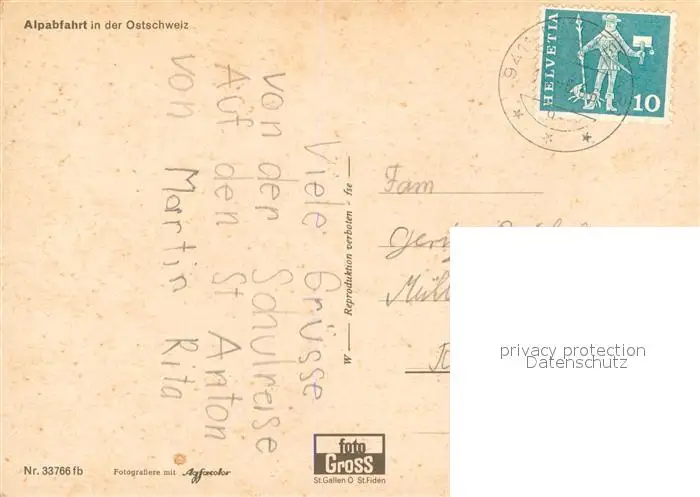 Reute_AR Alpabfahrt in der Ostschweiz Reute_AR postalisch gelaufen nach 1965 Erhaltung siehe scans [WerneD78] WernPID7