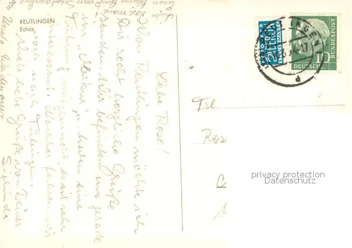 Reutlingen_BW Echaz postalisch gelaufen 1954 Erhaltung siehe scans [WerneD78] WernPID7