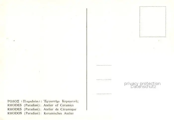 Rhodos Keramik Atelier Rhodos postalisch nicht gelaufen nach 1965 Erhaltung siehe scans [KathaD81] Kathoren