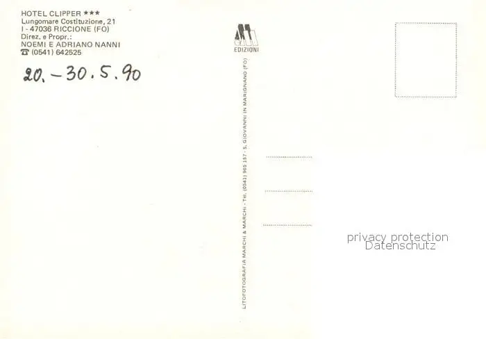 Riccione Hotel Clipper Strand Segelboot Riccione postalisch nicht gelaufen 1990 Erhaltung siehe scans [FriedD77] Frierer