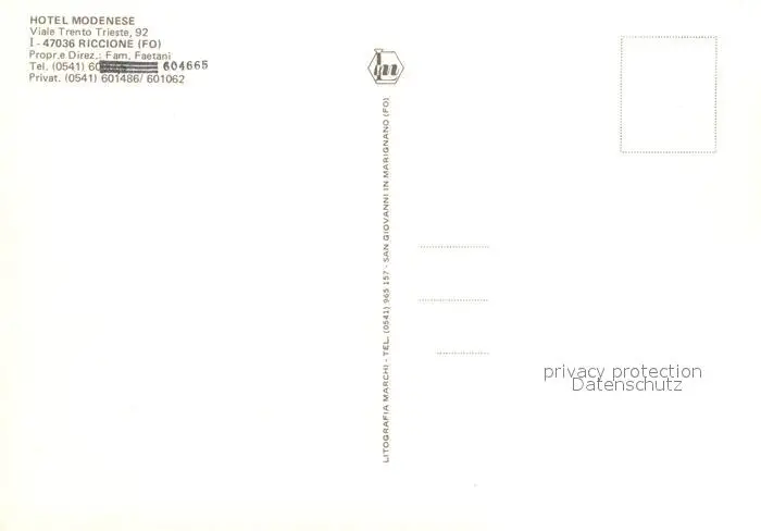 Riccione Hotel Modenese Riccione postalisch nicht gelaufen nach 1965 Erhaltung siehe scans [LiesaD40] LiesID40
