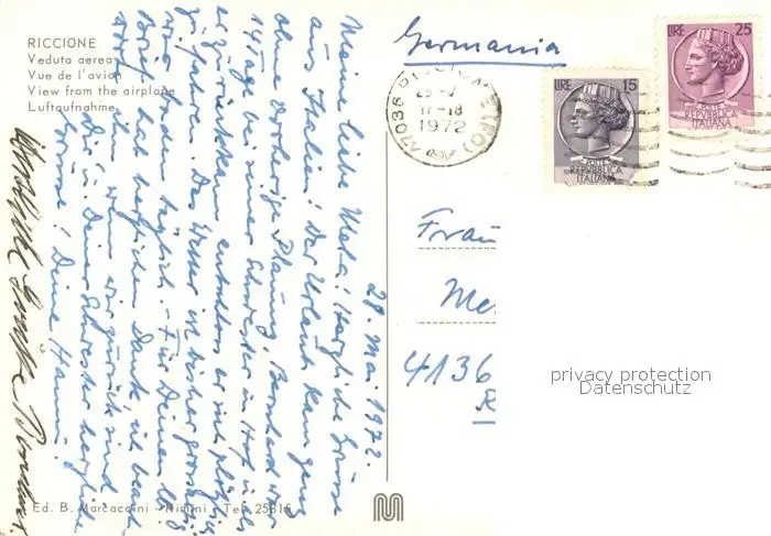 Riccione Veduta aerea Riccione postalisch gelaufen 1972 Erhaltung siehe scans [FriedD77] Frierer