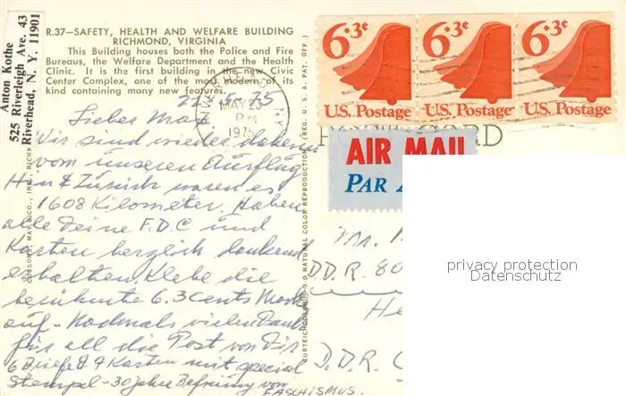 Richmond_Virginia Safety Health and Welfare Building postalisch gelaufen 1975 Erhaltung siehe scans [FriedD77] Frierer