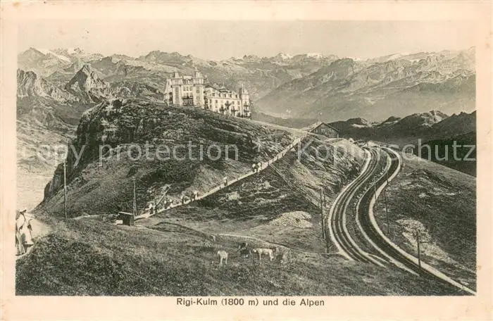 Rigi_Kulm Hotel Rigi Kulm mit den Alpen Rigi_Kulm postalisch gelaufen 1917 Erhaltung siehe scans [WerneD78] WernPID7