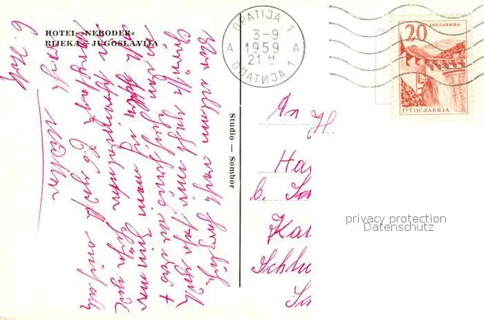 Rijeka_Fiume Hotel Neboder Rijeka Fiume postalisch gelaufen 1959 Erhaltung siehe scans [WerneD78] WernPID7