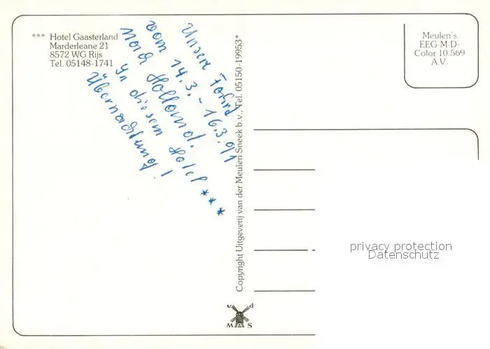 Rijs Hotel Gaasterland Rijs postalisch nicht gelaufen 1991 Erhaltung siehe scans [LiesaD40] LiesID40