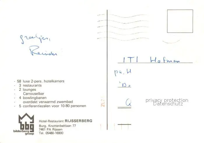 Rijssen Hotel Restaurant Rijsserberg Rijssen postalisch gelaufen nach 1965 Erhaltung siehe scans [FriedD77] Frierer