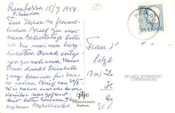 Rimforsa Schedevi Schloss Rimforsa postalisch gelaufen 1954 Erhaltung siehe scans [KathaD81] Kathoren