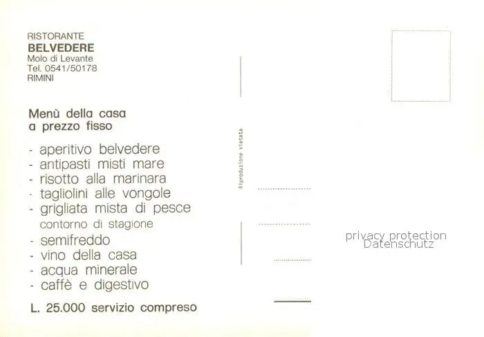 Rimini Ristorante Belvedere Rimini postalisch nicht gelaufen nach 1965 Erhaltung siehe scans [FriedD77] Frierer