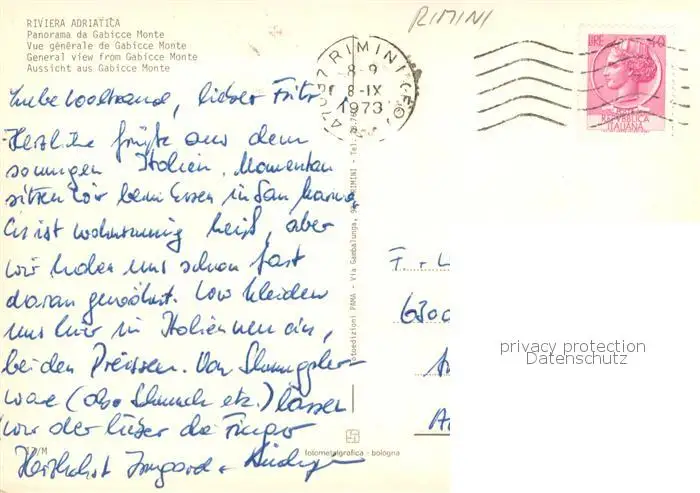 Rimini_IT Aussicht aus Gabicce Monte postalisch gelaufen 1973 Erhaltung siehe scans [LiesaD40] LiesID40